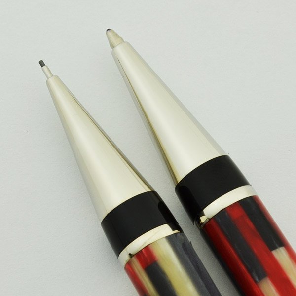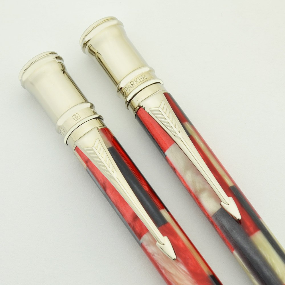 Condition Mint condition except for a small area of plating pitting on the upper left corner of the ballpoint's clip. (It was photographed before we noticed the pitting, and we subsequently were able to remove most of it, so the pen will look much better when you get it than it does in the photos). Both pieces look nearly perfect with excellent imprints and nearly no markings on the cones. Will ship in a nice Parker pen set box.