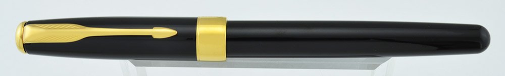 Color Solid Black Laque finish with gold plated trim and a large Premier style cap band. There's a black plastic cap jewel.