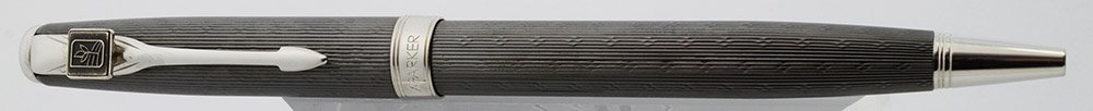 Color Chiselled Carbon is titanium plating over brass in a lined and diamond pattern. The trim is nickel palladium plated and the clip has a logo on it.