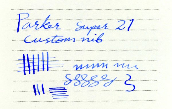 | Nib | Steel nib has been customized to a be a cursive italic -- aka fine every day writing italic. It's got thin lines across, and maybe a slightly left oblique to it. (see wrtitng sample below). |