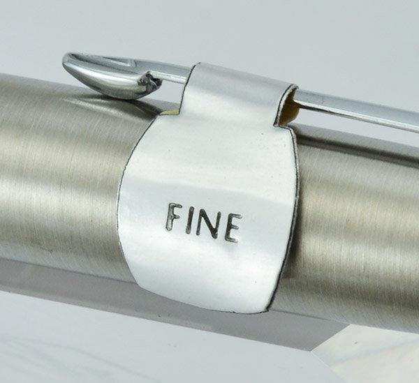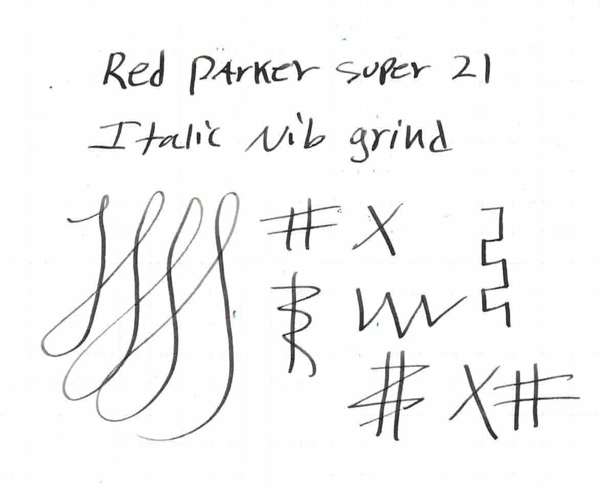 Nib FINE CURSIVE ITALIC grind, steel hooded nib is smooth with nice tipping. See writing sample below. The nib was ground here at PSP by Nivardo Sanchez.