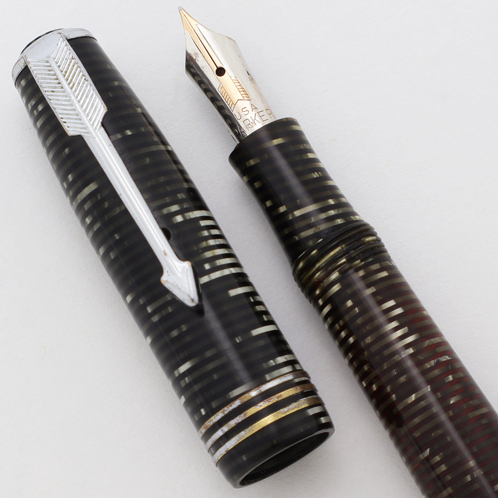 Product Name Parker Vacumatic Debutante (this is the smallest size of lockdown vacumatic). It differs from sub-debs in that the jewels and section are striped, indicating it's an upscale model.