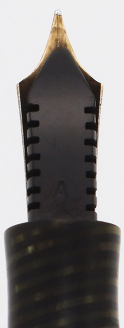 Nib Fine nib is in excellent condition, very symmetrical and smooth. There's an A on the feed, suggesting that it's a firm and fine accountant nib. Some of the nib masking has been polished away, but this should not affect the nib's performance.