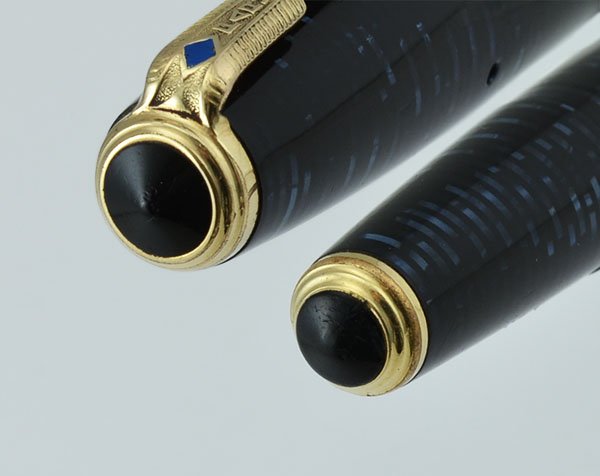 Condition Excellent condition, no chips, cracks. There are some very small, light scratches in the cap and lower barrel. The trim looks quite nice, though there are some small spots of brassing roung the tip of the clip, it's edges, and the gold rings around the two jewels on the ends of the pen (see photos). The imprint is readable. The pen is really quite beautiful, and working very well after our restoration process.
