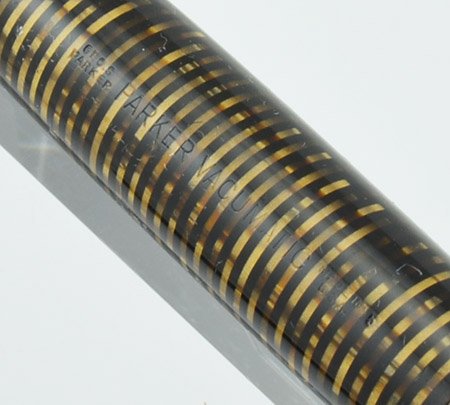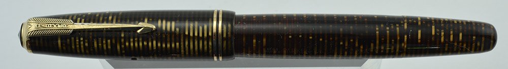 Color Golden Pearl brown striped finish with gold plated trim and a black cap jewel. Thin double cap band and a split arrow clip.