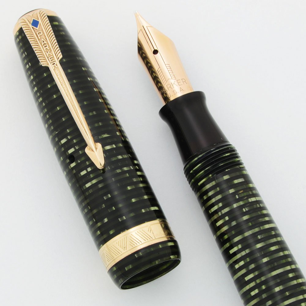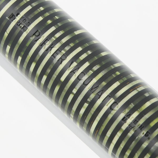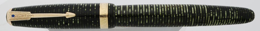 Color Emerald Pearl. Green and black striped body with gold filled trim.