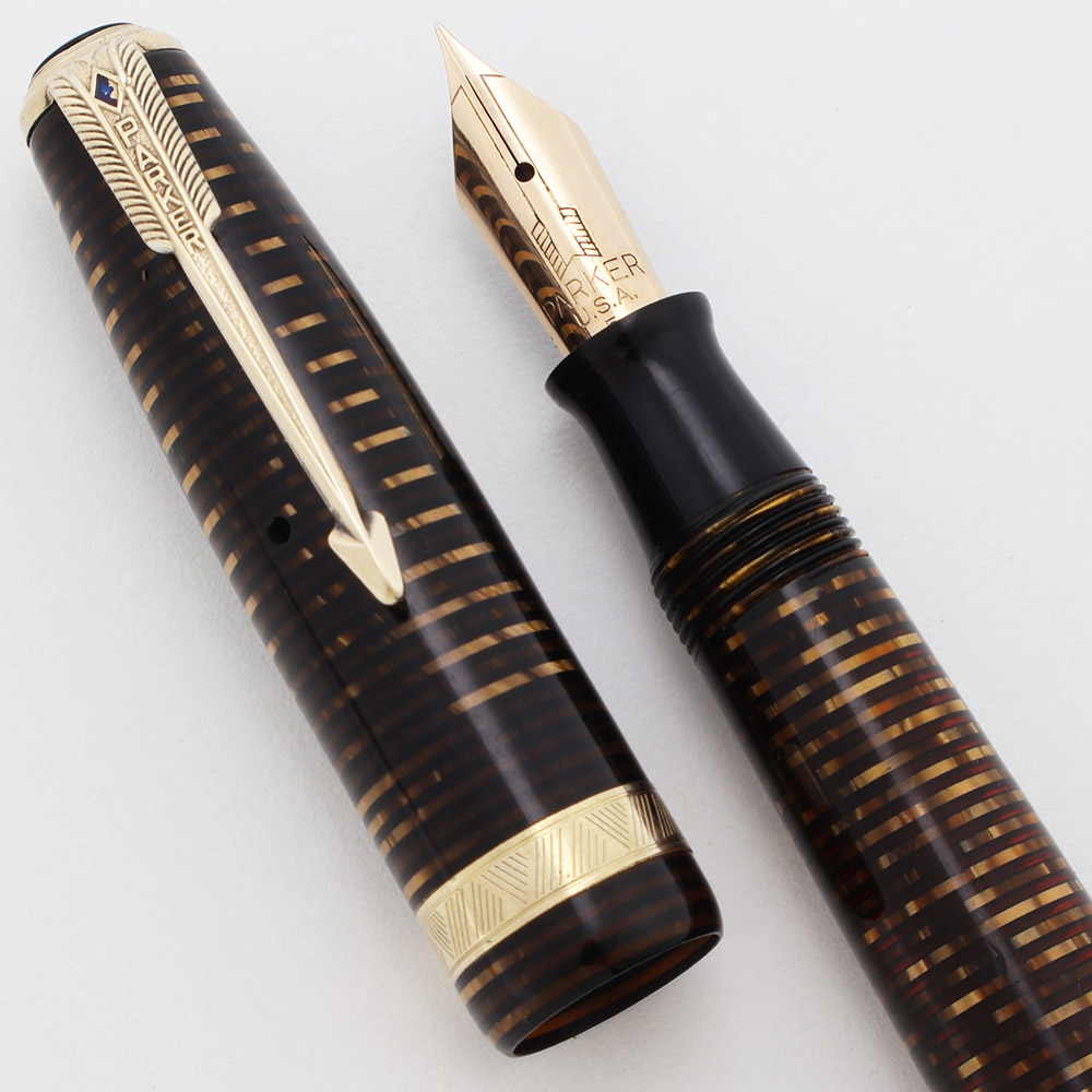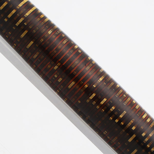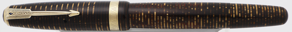 Color "Golden (Brown) Pearl" with gold plated trim with blue diamond on clip. The 1/8" cap band has a pattern: ///\\\