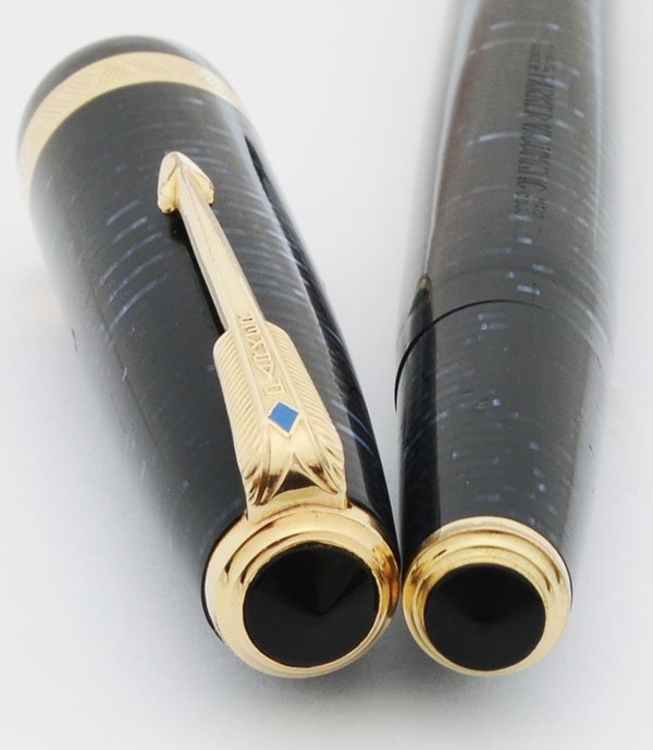 Manufacturer and Year Parker, USA -- No date code (1930s). 1939 is a transitional year for this model, when the Blue Diamond clip was introduced and the pens still had double jewels.