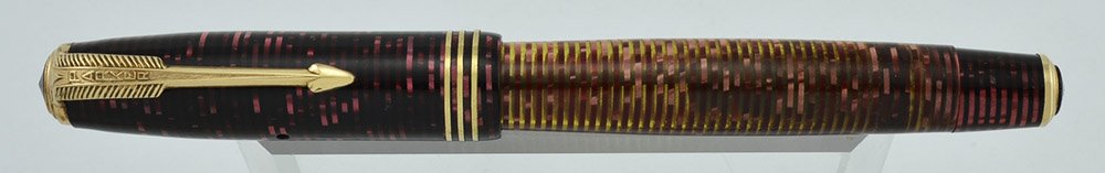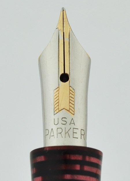 Manufacturer and Year Parker, USA -- no date code on the barrel. The first generation "Slender" pens with lockdown fillers were last cataloged in 1937 but the burgundy is an uncatalogued model. We daye it somewhere between 1937 and 1940.