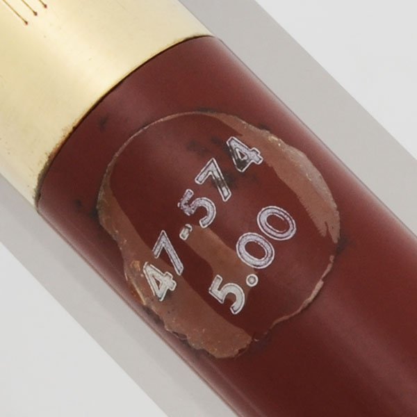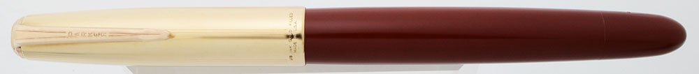 Color Brick red body with a 1/8 14k gold filled cap in a pattern of groups of 3 lines up and down the cap. Pencil's cap is 1/10 14k gold.