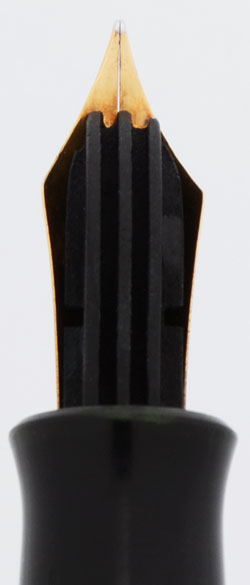 Nib FINE 14k flexible nib. See the writing sample below. (Sometimes these have nibs marked "IBIS" and sometimes it just says "Pelikan" like this one.)
