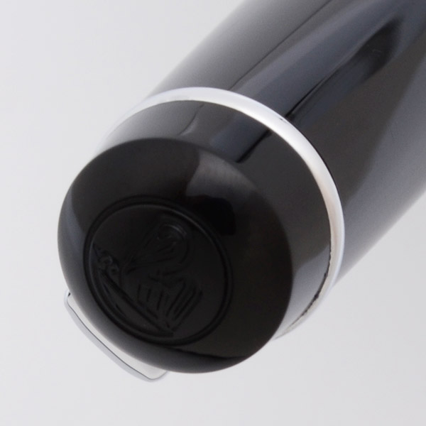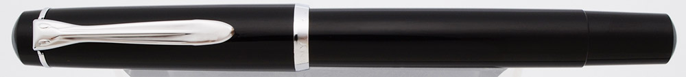 Condition Near mint condition with no cracks, chips, dents, or dings. This is a velvety black, shiny pen that looks great. The barrel has slight marks caused by the cap lip. The cap and barrel have mainly light signs of usage. The cap band and clip both look great. The imprints are clear.