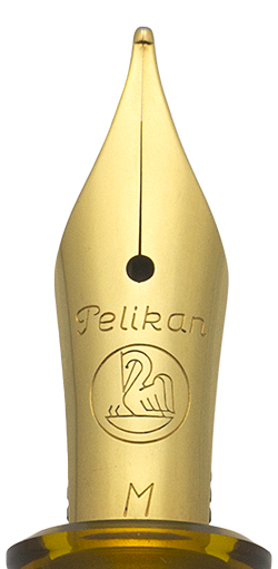 Condition Near mint condition with no cracks, chips, dents, or dings. This is a light amber, shiny, transparent pen that is in a classic design. The cap and barrel are excellent, with no visible scratches. The gold band at the end of the barrel has microscratching and some dots of tarnish. The cap band has a few very light microscratches. The clip and clip band look excellent. The Pelikan logo on top of the cap looks great. The imprints are clear.