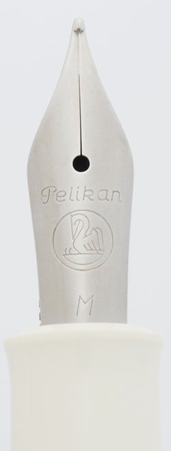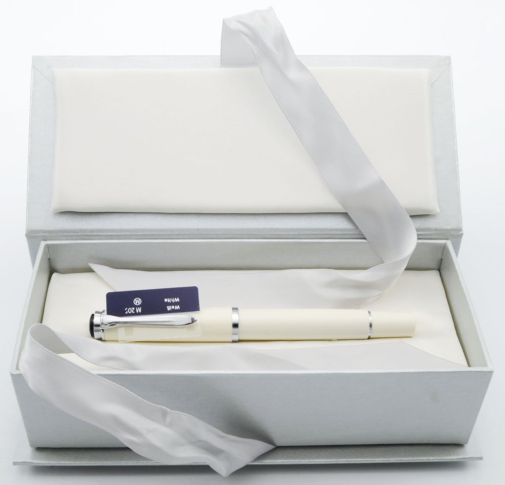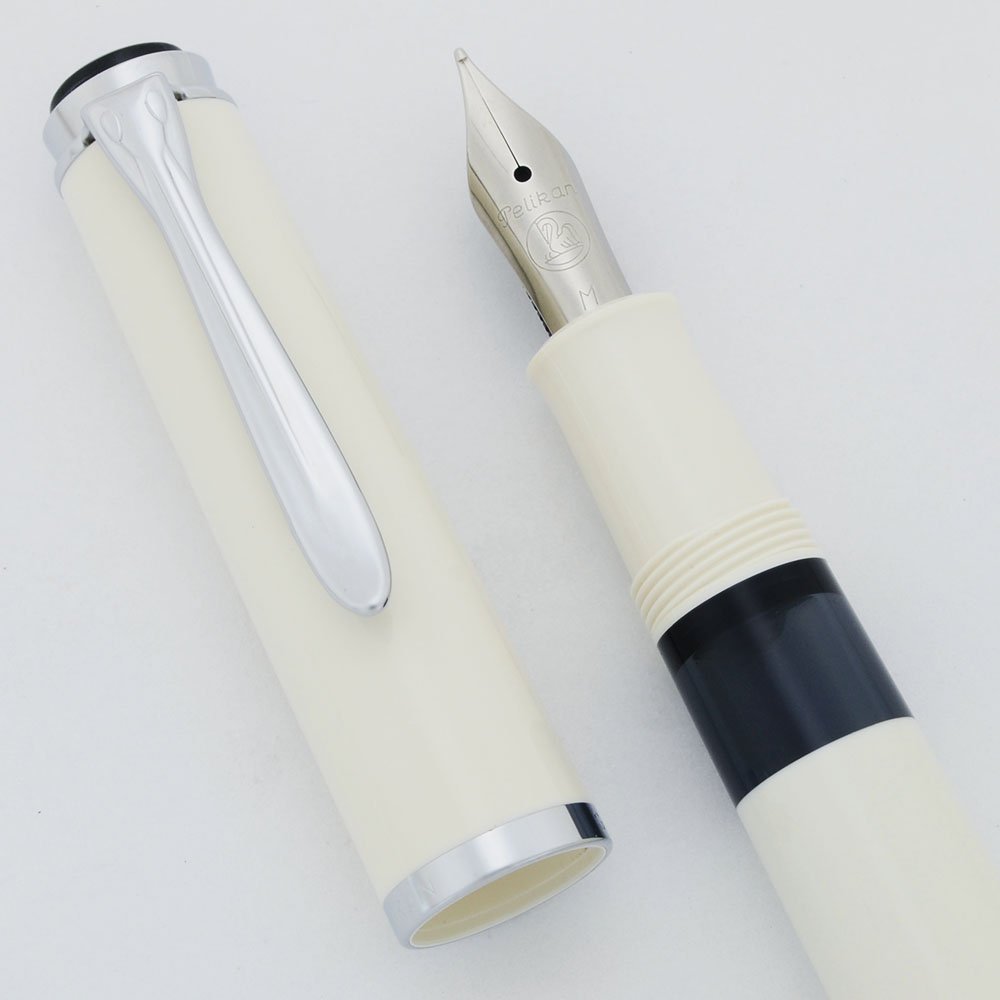 Color White with chrome plated trim and the Pelikan symbol in silver on the black cap jewel.