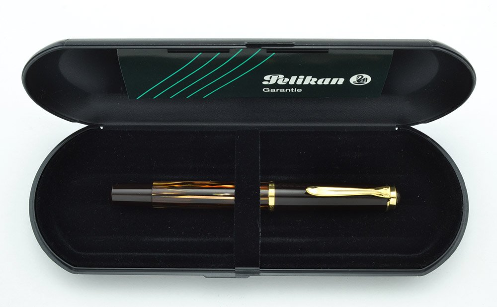 Manufacturer and Year Pelikan, Germany. Between 1992 and 1997. (There are three different brown tortoise 400s, and this is the second style from the 1990s. 1950s brown tortoise 400s had vertical feed fins and a different looking nib. The ones made after 1997 had two gold rings on the barrel.)