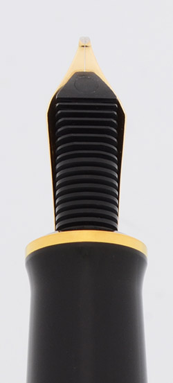 Nib Medium 14k 2-tone nib, with a cursive italic grind by Mark Bacas.