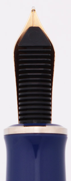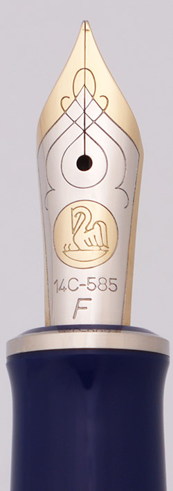 Nib 14k two-tone fine nib. The silver colored part of the two-tone is rhodium plating.