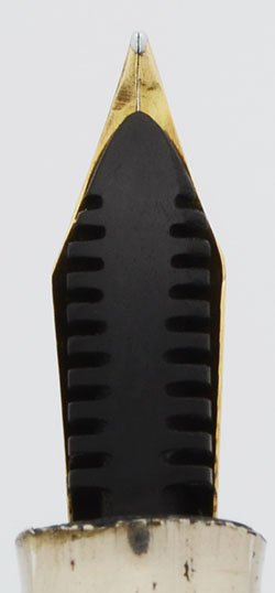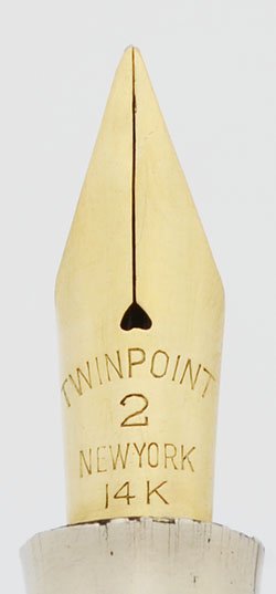 Nib FLEXIBLE FINE 14k #2 nib. The tines spread just enough for line variation. See the writing sample below. The nib is marked Twinpoint New York.