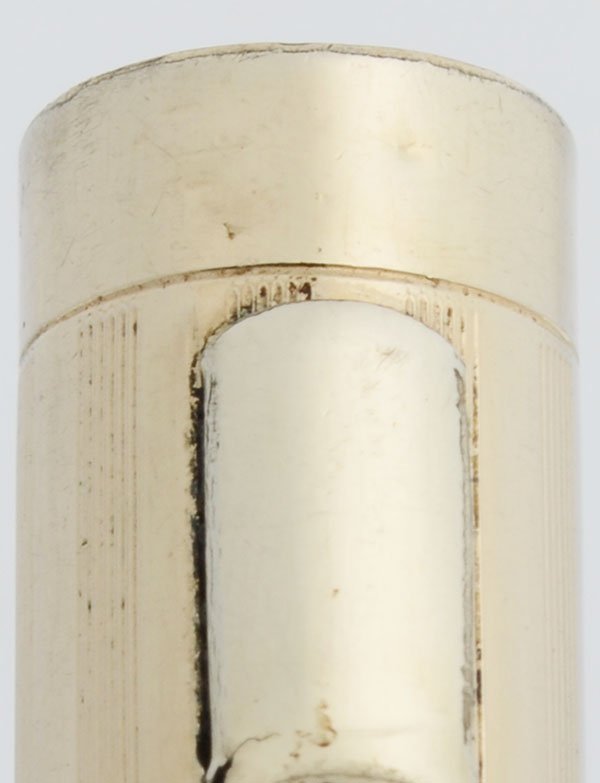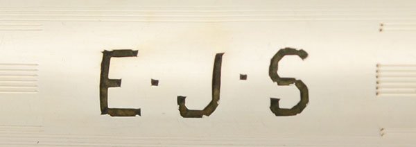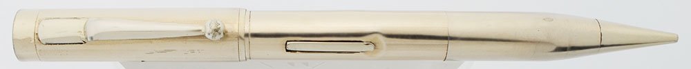Condition Very Nice condition. There are bite marks on the cap and several dents throughout including a few in the cartouche area around the personalization, "E.J.S." The beginning of the cone shape of the pencil part has round circles of wear. There is additional small areas of brassing throughout, but none of it is as visible as the circles near the cone. The imprint is a little difficult to read, but is fully intact. We've restored the pen part, and both it and the pencil mechanism are working very well.