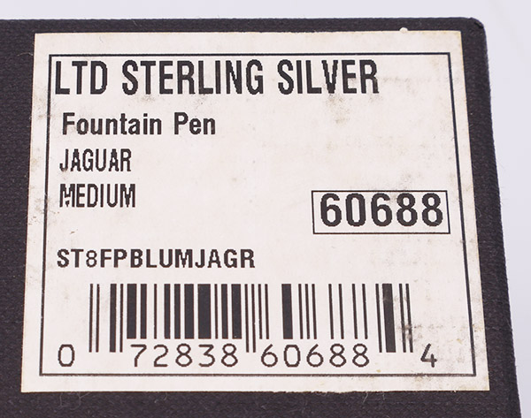 Note: the label on the box indicates a medium nib, but this one is fine. The serial number (132) does match the imprints on the pen as well as the certificate of authenticity, so the nib section was exchanged for the different size at some point.