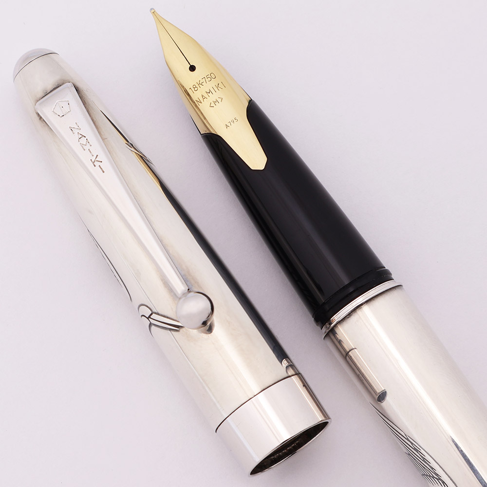 Nib Medium 18k nib is marked M. Japanese mediums are finer than most western medium nibs.