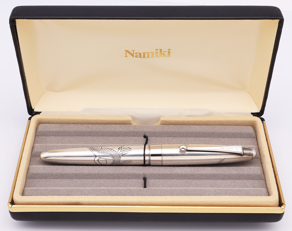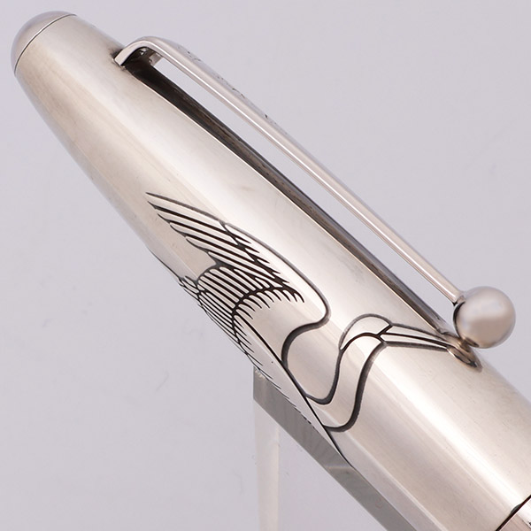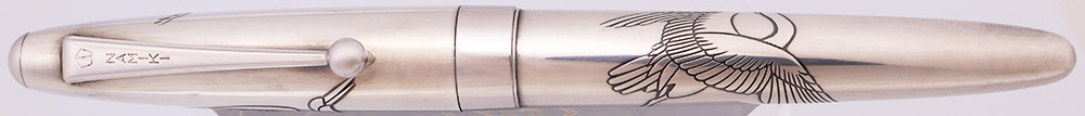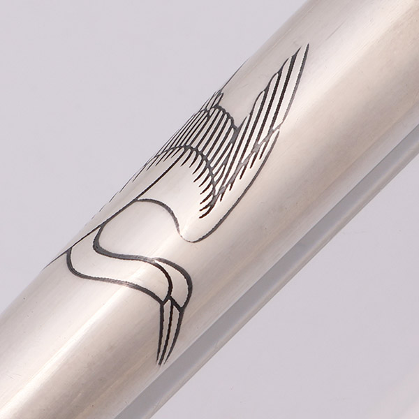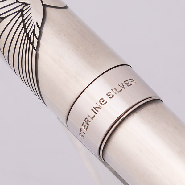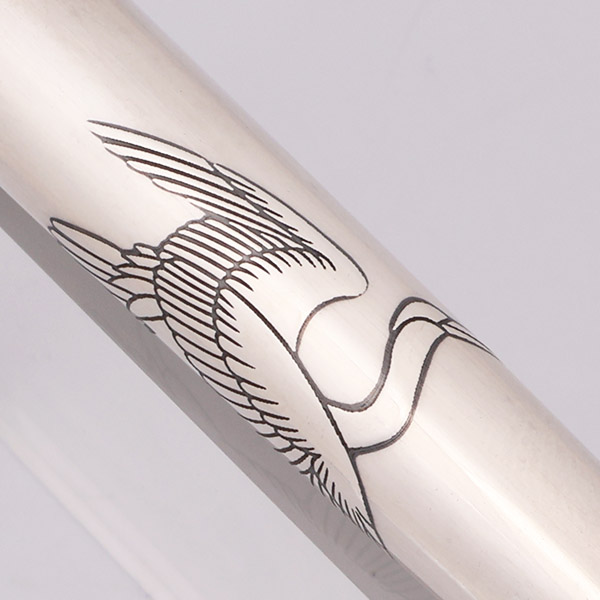Color Sterling silver. The cap and barrel both have images of cranes on them.
