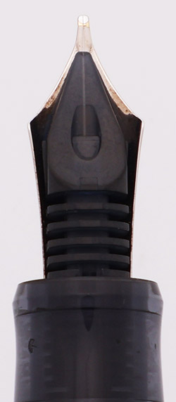 Color Clear smoke see-through pen with rhodium trim. Original nib size sticker on barrel.