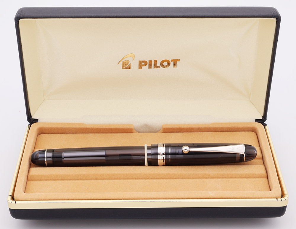 Condition Near mint condition, in box, with paperwork. This is a smoke colored, shiny pen that is see-through. It has been inked but it is like new condition. The imprints are clear.