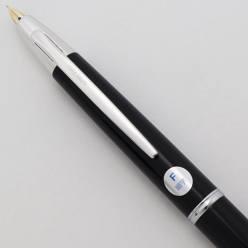Condition Excellent condition. There are some moderate scratches near the center trim band, and light scratching on the rest of of the cap and barrel. The clip and trim have microscratching. No cracks, chips, dents, or dings. The imprints are crystal clear. The Decimo is a slightly slimmer version of Pilot's Vanishing Point retractable fountain pen - the diameter at the grip of the VP is 11.8mm, whereas the Decimo's grip diameter is 10.6mm. Additionally, the Decimo is lighter - 20.6g vs. 30g for the VP. If you love the retractability and ease of deployment of the Vanishing Point, but it's just a touch too big or heavy, the Decimo may be a better fit for you.