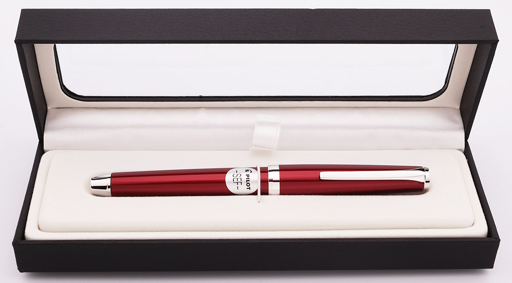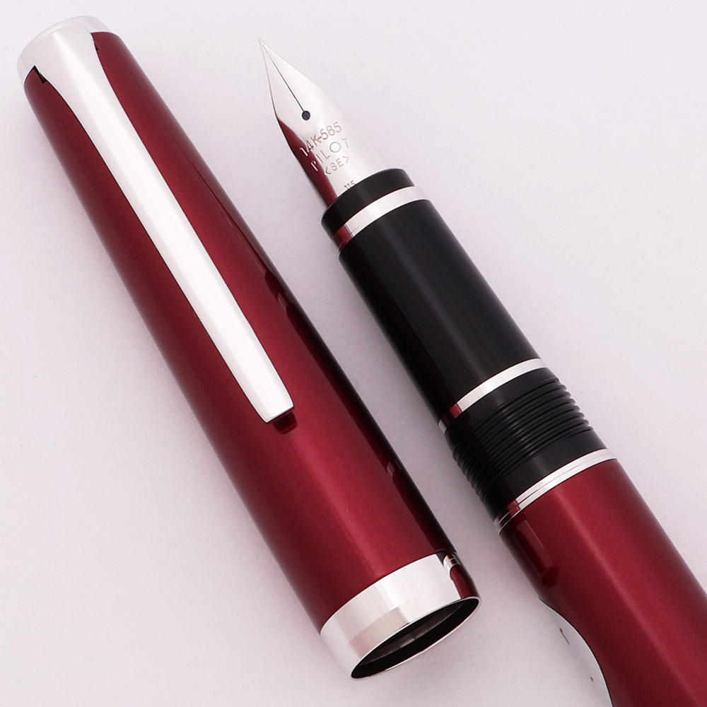 Color Metallic red lacquered cap and barrel with rhodium-plated trim. Pilot calls this color burgundy.