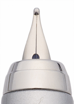 Nib MEDIUM 18k rhodinated nib is labeled M. It is a small and smooth nib. This is the same nib unit as the Vanishing Points take.