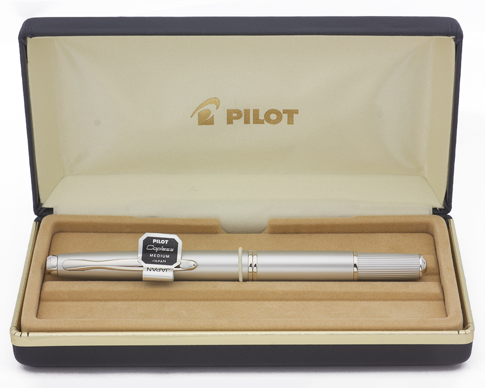 Filling System Pilot cartridge or converter. A CON-50 piston converter is installed. It can also take Pilot and Namiki cartridges, with an adapter (included). The tip extends and retracts via a knob at the end of the pen. (You have to take the nib unit out of the pen in order to fill it.)