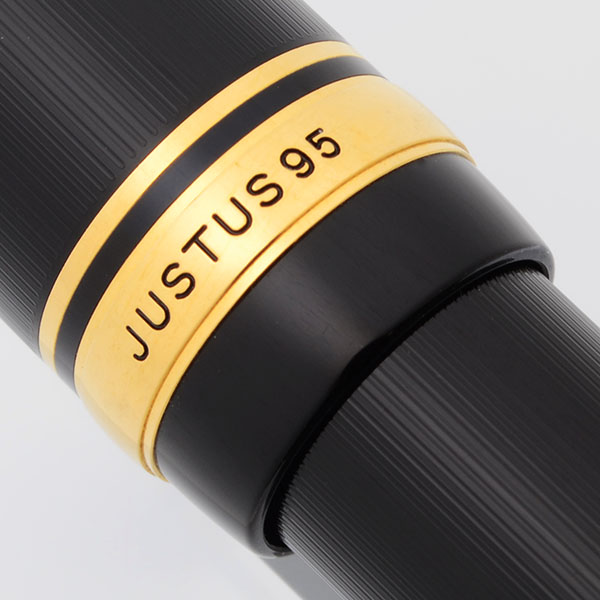 Color Black colored resin with gold trim. Cap and barrel have a fine lined pattern.