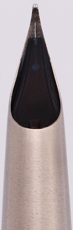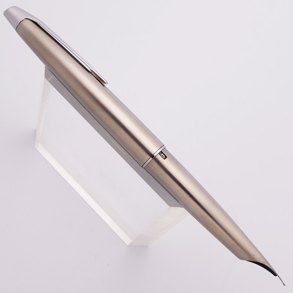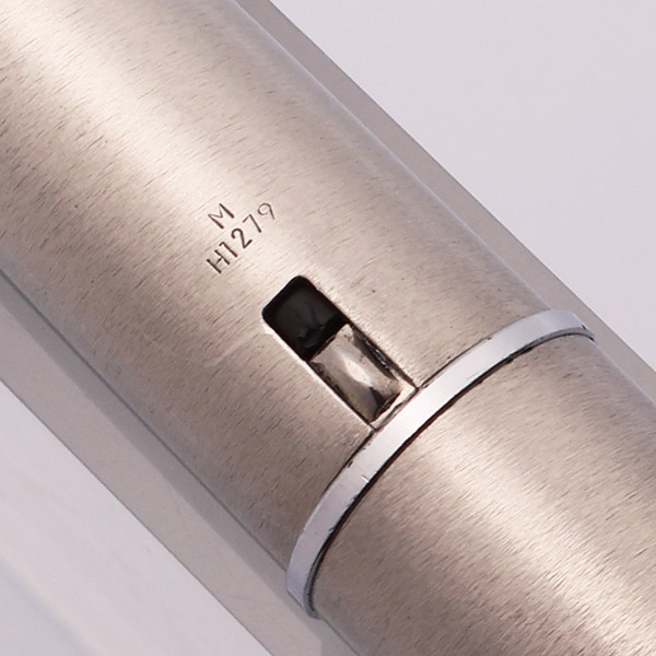 Condition Excellent condition with no cracks or chips. This is a unique, sleek, monochromatic pocket pen in a mod design. The cap and barrel have light scratching as well as faint marks caused by capping and posting. The clip has light to moderate microscratching. The black dot on top of the cap looks good. The imprints are clear.