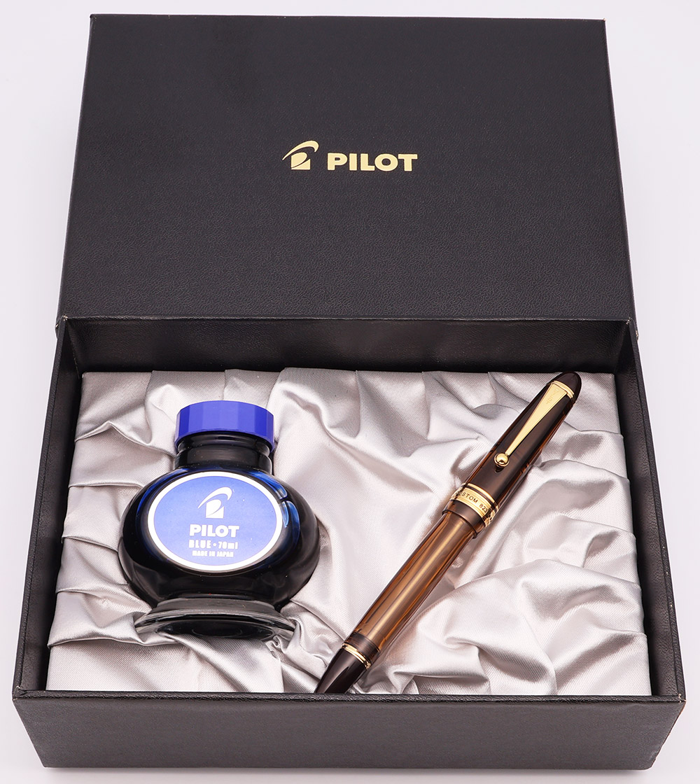 Filling System Vacuum filler. There is a bottle of Pilot Blue Ink in the gift box