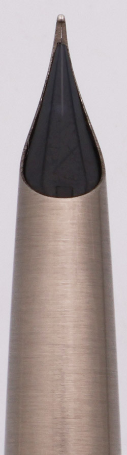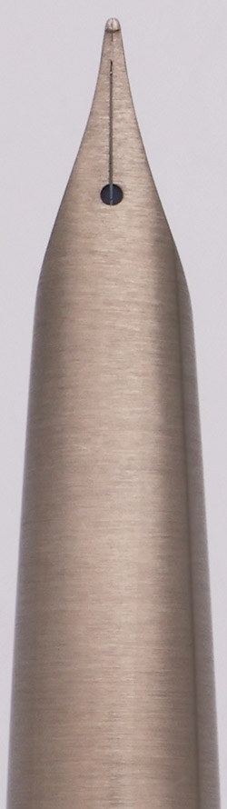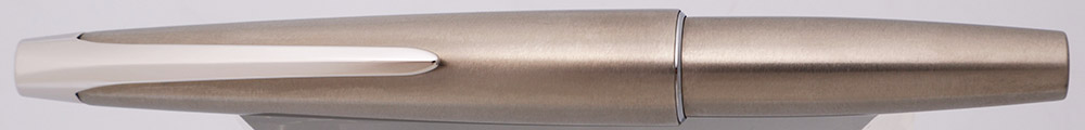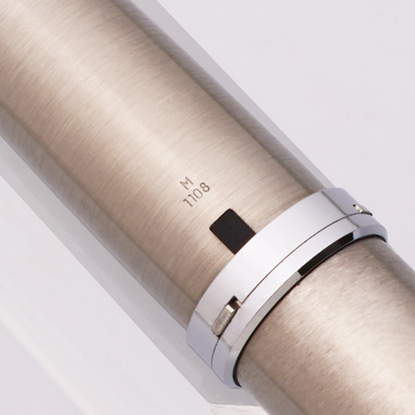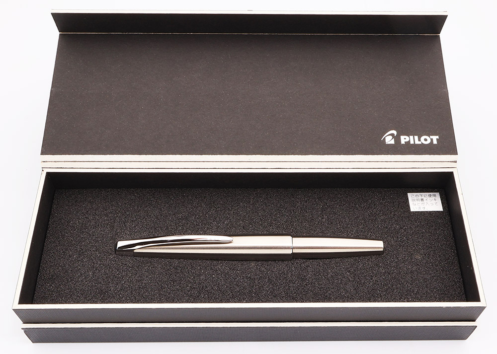 Condition Excellent + in box. Under magnification, we see some scratches on the section and barrel from the cap lip; when the pen is in hand they blend into the pen's brushed surface quite nicely. The pen otherwise looks fantastic. The clip is perfect, no brassing, plating wear, or even polishing marks. Ships in original unique box with paperwork and outer cardboard sleeve.