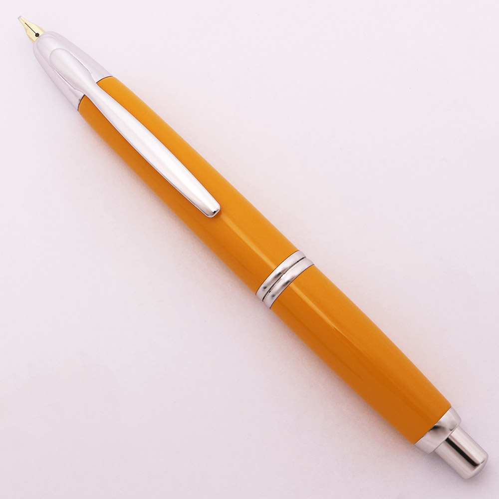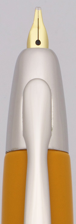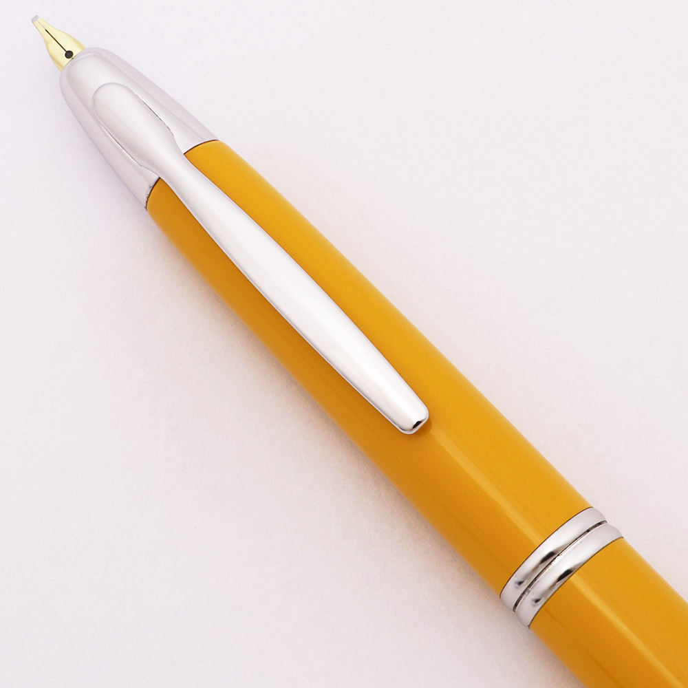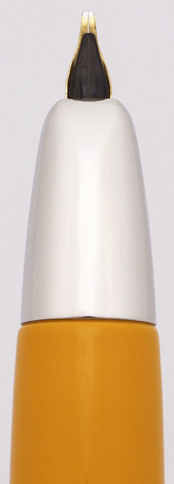 Condition Near mint condition with no cracks, chips, dents, or dings. This is a shiny yellow pen that is in lovely condition. The cap and barrel are perfect with no scratches. The clip looks great. The cone has a few light scratches. The clicker and cap band have light microscratching. The imprints are clear.