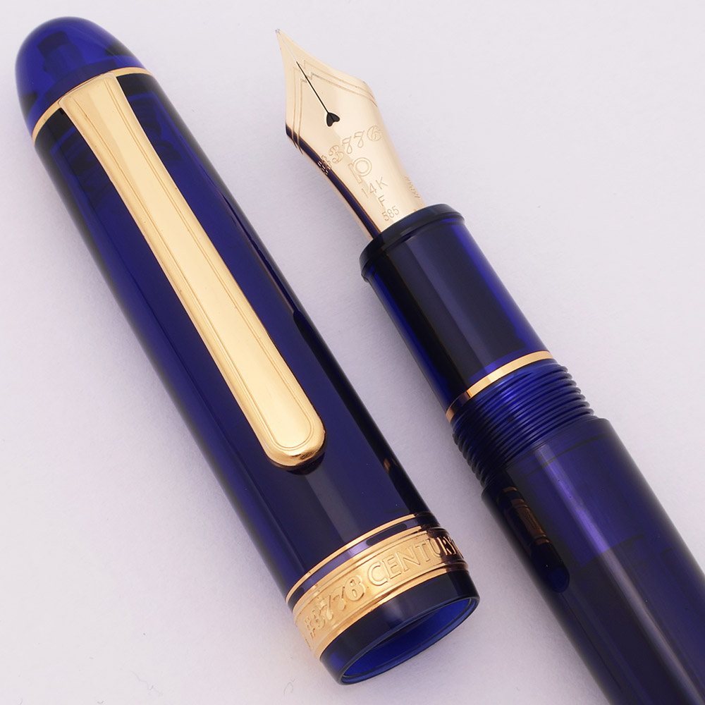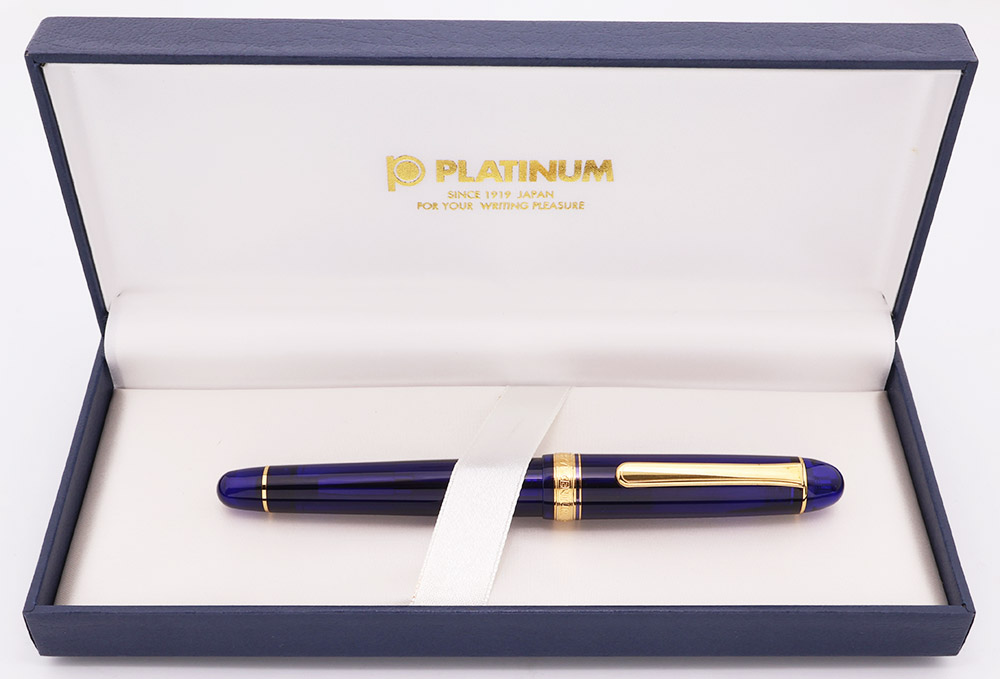 Condition Near mint condition, in box, with paperwork, and with no cracks, chips, dents, dings or scratches. This pen has been previously inked. It is a large, shiny, translucent pen that is regal. The cap and barrel have light microscratching. The trim and cap band are beautiful. The imprints are clear.