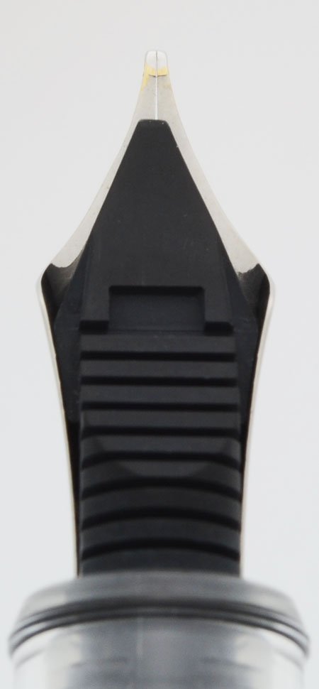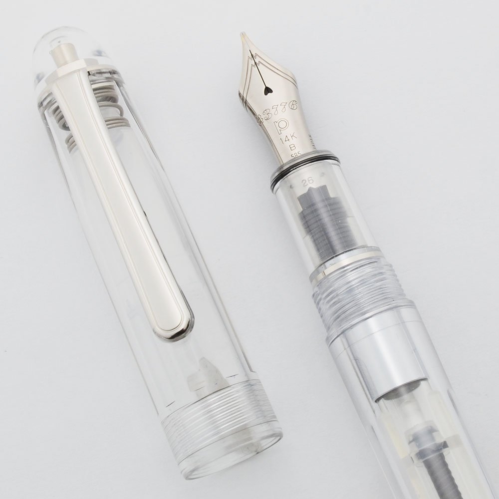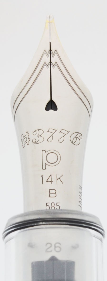 Nib Broad Cursive Italic 14k rhodium masked 3776 nib. It has a B on it for broad and was cut so that it writes with some line variation. (We didn't do the nib work.) The Platinum broad nibs write like Western broad nibs.