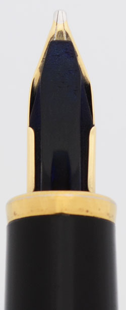 Condition Excellent condition with no cracks, chips, dents, or dings. This is a velvety black, shiny pen in a nice, sleek design. The barrel has light scratching with moderate scratching at the end caused by posting. The gold band at the end of the barrel has quite a bit of microscratching. The cap has light scratching throughout. The cap band has light microscratching and a few very small blotches of plating wear. The clip and gold top plate have moderate microscratching. The imprints are clear.