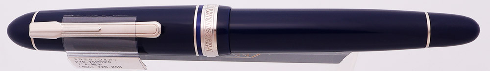 Color Dark blue with rhodium plated trim. It has rounded ends and looks quite similar to the Platinum 3776 but with a different clip.