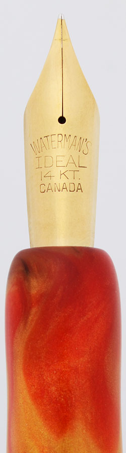 Nib Waterman, CANADA Fine Flexible nib. Very large nib, possibly from a #7 sized pen. See writing sample below. This is a very smooth and very wet nib, so you may need to experiment with different inks to get acceptable and manageable ink flow.