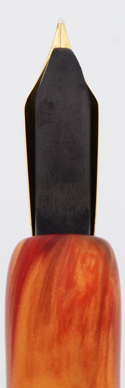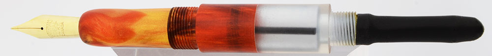 Filling System Bulb-filler. It's a simple filling process: remove the blind cap, put the nib in ink, and squeeze the sac/bulb and watch the ink level rise in the clear barrel. Leave the nib in the ink for a few seconds, pull it out and wipe off any excess ink on the section. The pen is ready to write. (If you unscrew the barrel, you will need to re-apply silicone grease because it is important that the threads are well-sealed.) These pens can burp ink when the ink level gets low or the barrel warms up, so you should keep an eye on the ink level.