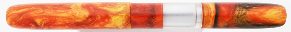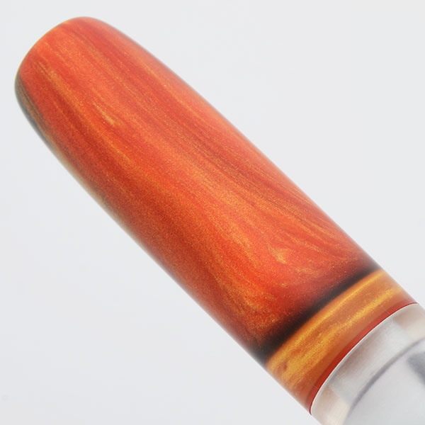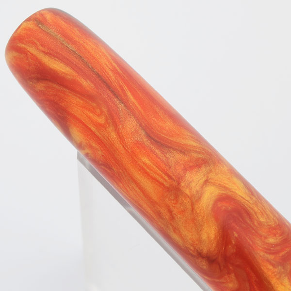 Color "Solar Flare" is a unique combination of red, gold, rust, and brown alumilite, cast by Peyton Street Pens.