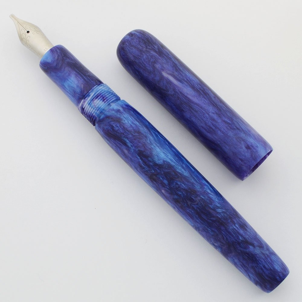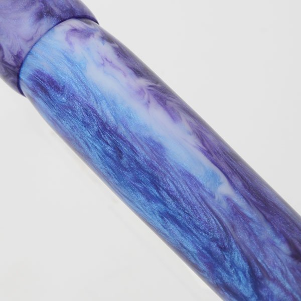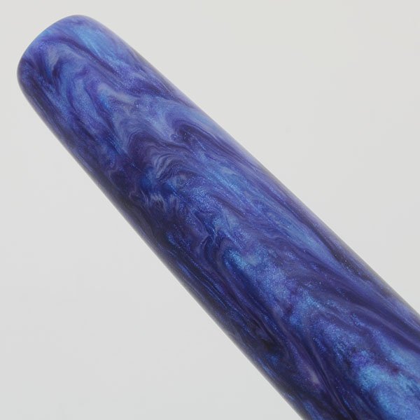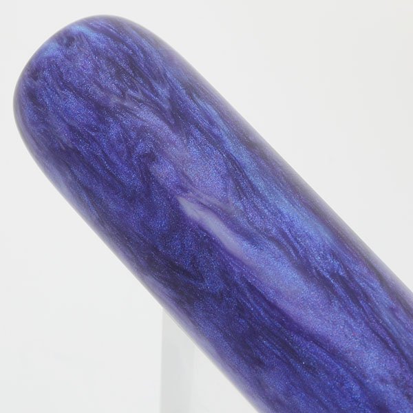 Color Matte blue and raspberry swirls with luminescence. Flat ends, rounded.