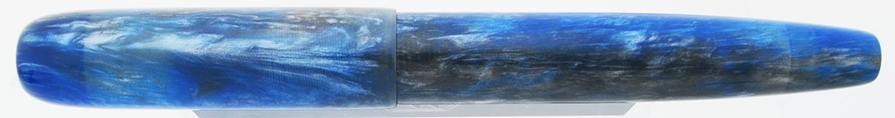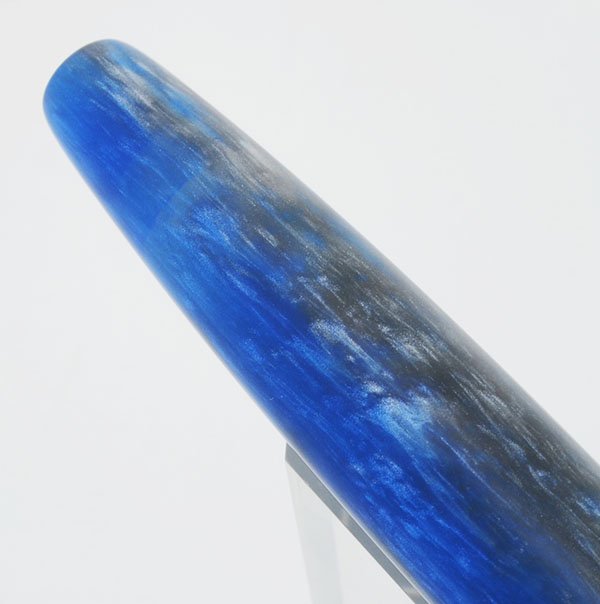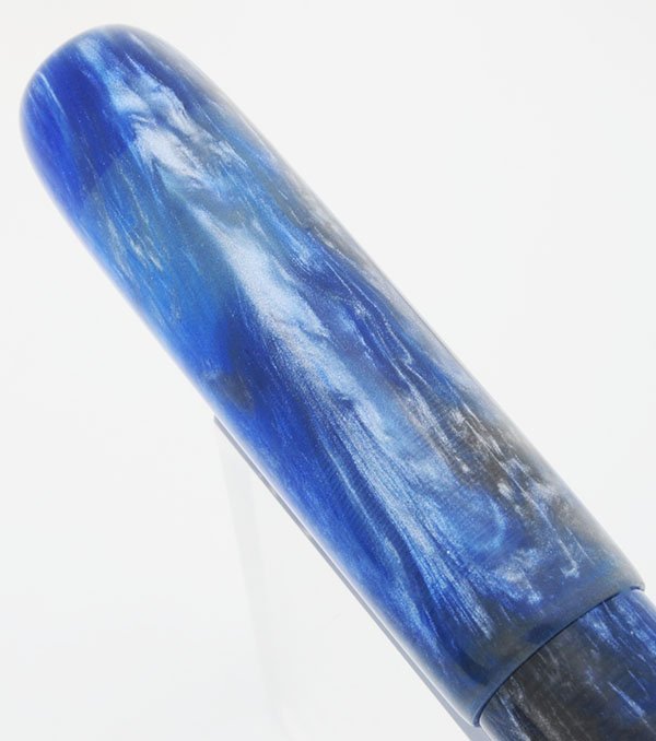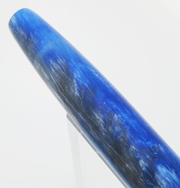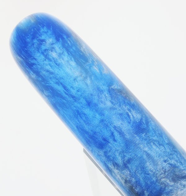 Color Blue and silver -- a unique combination of swirled alumilite, with some small reflective flecks, cast by Peyton Street Pens. No clip, but you can add one of our hand made rollstops.