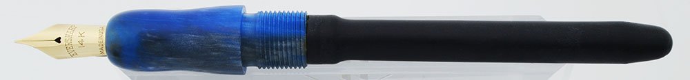 Filling System Blow-filler. It's a simple filling process: put the nib in ink, and blow in the hole in the end of the barrel. (Surprsing little pressure is actually required.) Leave the nib in the ink for a few seconds, pull it out and wipe off any excess ink on the section. The pen is ready to write. You don't need to unscrew the barrel, but if you did you'd see a simple rubber sac which will be easy to maintain and replace if it ever wears out.