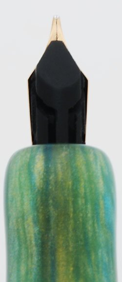 Filling System Blow-filler. It's a simple filling process: put the nib in ink, and blow in the hole in the end of the barrel. (Surprsing little pressure is actually required.) Leave the nib in the ink for a few seconds, pull it out and wipe off any excess ink on the section. The pen is ready to write. You don't need to unscrew the barrel, but if you did you'd see a simple rubber sac which will be easy to maintain and replace if it ever wears out.