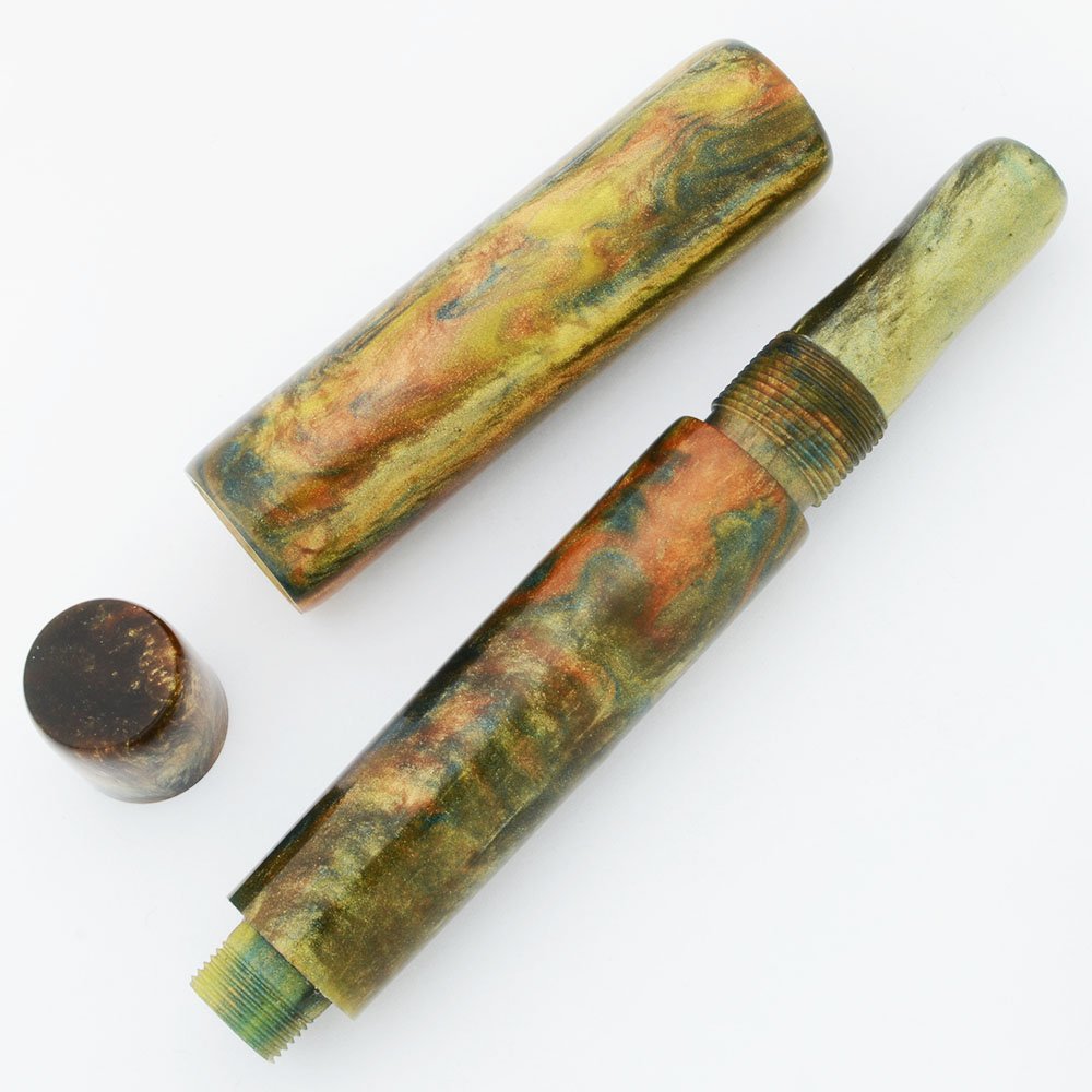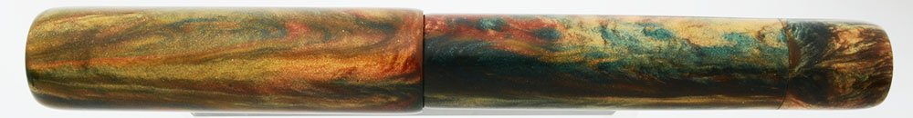 Color "Humboldt" swirled alumilite, cast by Peyton Street Pens. No clip, but we can install one of our hand made sterling rollstops.