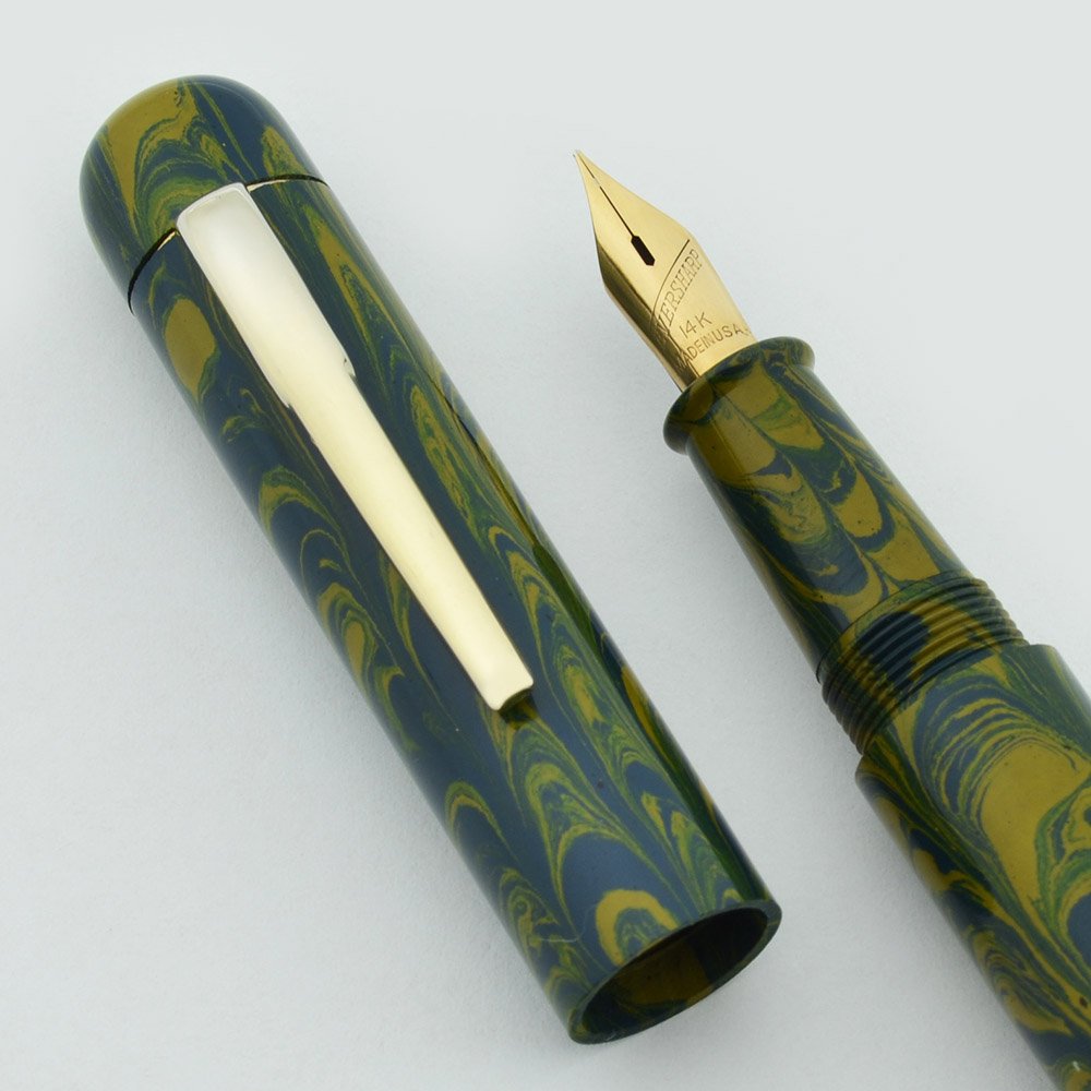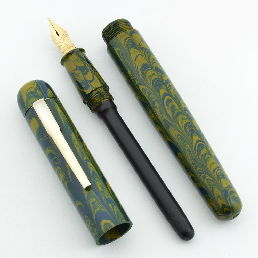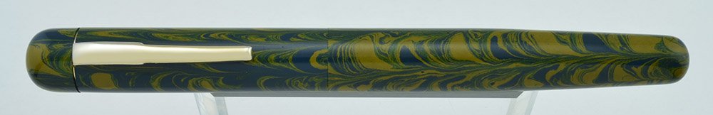 Color This pen has the Blue Yellow Ripple smooth ebonite finish. The clip is gold colored, and can be removed for a sleeker look.